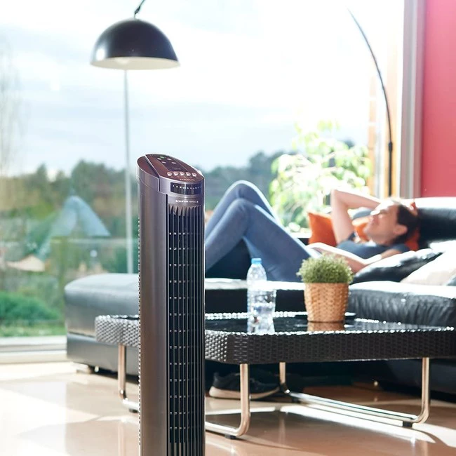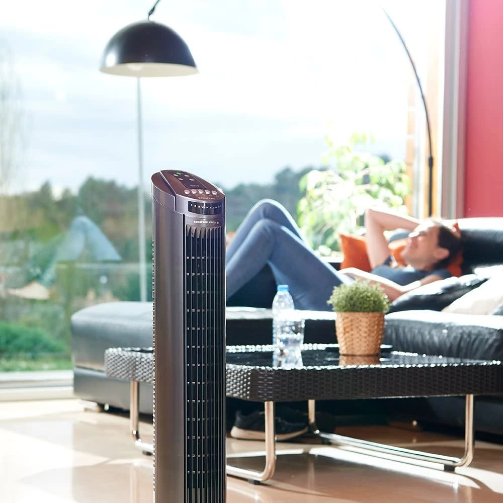 Además, gracias a su mando a distancia podrás controlarlo sin moverte del sofá (o la cama) y programarlo hasta 7 horas para ahorrar energía. El ventilador en forma de torre dispone también de certificación de eficiencia energética A.