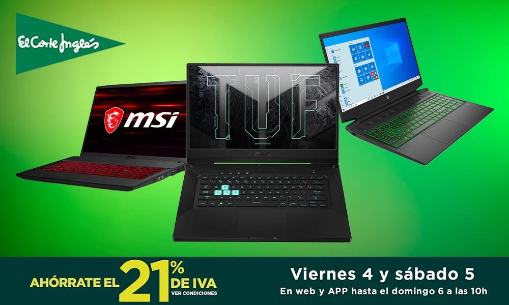 Los gamers que estén pensando en cambiar de portátil también tienen estupendas oportunidades en los Días sin IVA de El Corte Inglés. Aquí hemos reunido los modelos más interesantes de HP, ASUS, Lenovo o MSI que hemos encontrado rebajados. Sigue leyendo para tener todos los detalles.