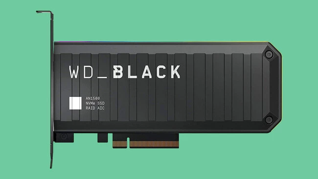 WD_BLACK AN1500 de 2 TB SSD NVMe AIC (tarjeta complementaria), hasta 6500 MB/s en lectura & 4100 MB/s en escritura