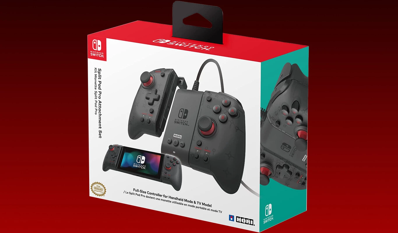 En esta ocasión nos referimos al HORI Split Pad Pro con Soporte, un mando que es capaz de hacer las funciones de Joy-Cons y de mando pro, sin tener que hacer el desembolso en ambos productos por separado. Como podemos ver, este modelo de la compañía cuenta con un soporte pensado para poder conectar los Joy-Cons a través del mismo, obteniendo un mando tradicional con cable para utilizarlo en nuestra televisión.