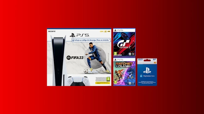 Si accedemos ahora mismo al enlace, tendremos disponible stock de la consola más demandada del mercado. Además, como hemos comentado, en esta ocasión vendrá acompañada de 3 juegos y 50€ de saldo para la PS Store. Concretamente, los juegos que vienen en el pack son FIFA 23, Gran Turismo 7 y Ratchet and Clank Rift Apart, por lo que contaremos con una amplia variedad de géneros.