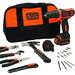 Los complementos, que podemos ver en la imagen superior, se componen de un martillo, llave ajustable, cutter, dos alicates, cinta métrica de 3 metros, 10 puntas de atornillar 1" (Hex, PH, PZ, Slot), 4 brocas HSS (3, 4, 5, 6mm), bolsa de transporte, una batería de litio 10.8V (1.5 Ah) y cargador.