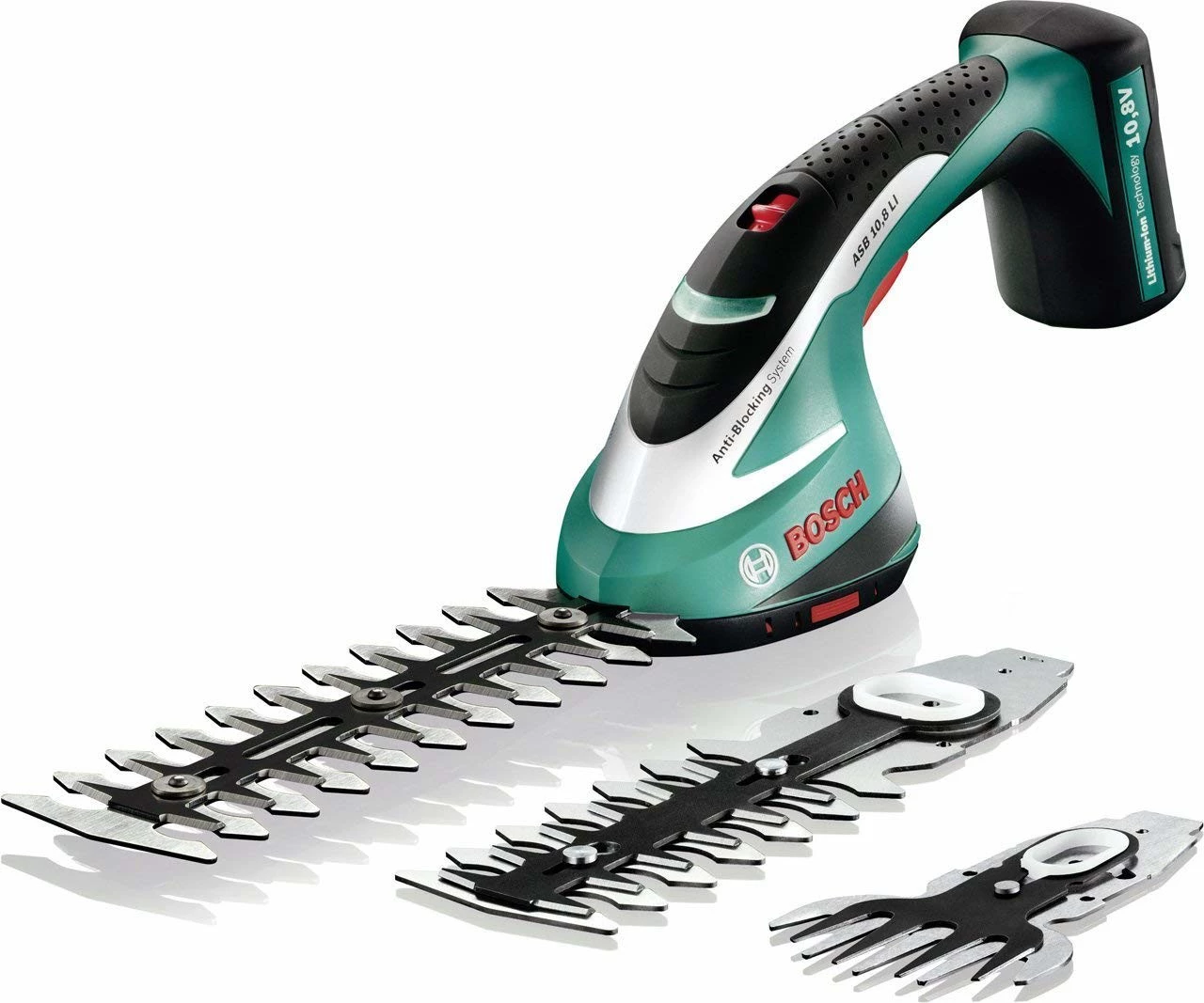 Ideal para el cuidado de setos y otros pequeños arbustos, este set de Bosch viene con dos cuchillas de diferentes longitudes (de 12 y 20 cm) además de una hoja ancha de 10 cm especialmente diseñada para hacer las esquinas y recovecos difíciles del césped donde un cortacesped no puede llegar.