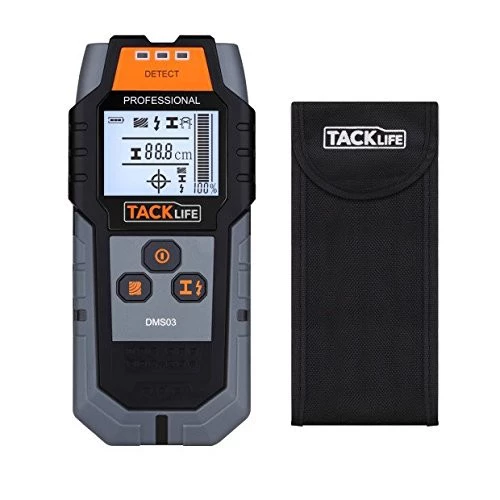 Este escaner de pared de Tacklife nos puede resultar muy útil para la detección de metales ferrosos o no ferrosos dentro de la pared, ya sean clavos de metal, tuberías de acero o cobre, alambres, etc. Tiene una profundidad máxima de detección en metales ferrosos de hasta 80 mm, de hasta 60 mm en metales no ferrosos e incluso de madera en la pared hasta 20 mm. Viene con pantalla LCD retroiluminada que nos indica si hay madera, cableado eléctrico o metal. Tenemos más info en la web oficial de Tacklife.