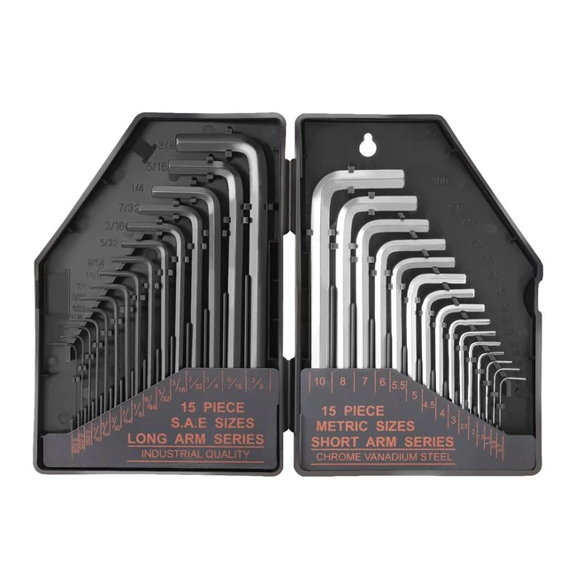 Este set de 30 llaves Allen incluye 15 llaves hexagonales grises de brazo corto (métrico) con medidas de 0.7, 0.9, 1.3, 1.5, 2, 2.5, 3, 4, 4.5, 5, 5.5, 6, 7, 8 y 10 mm y 15 llaves hexagonales negras de brazo largo (pulgada) de 0.028, 0.035, 0.050, 1/16, 5/64, 3/32, 7/64, 1/8, 9/64, 5/32, 3/16, 7 / 32, 1/4, 5/16 y 3/8 pulgadas. Todas las llaves Allen están fabricadas en acero cromo vanadio de alta calidad y vienen en una caja para poder mantenerlas ordenadas en todo momento. En principio en España vamos a usar más las llaves Allen de sistema métrico, pero si importamos o tenemos algún producto americano es muy probable que si llevan tornillos Allen sean en sistema de pulgadas, no métrico. Tenemos más info e imágenes en la web oficial de Tacklife.