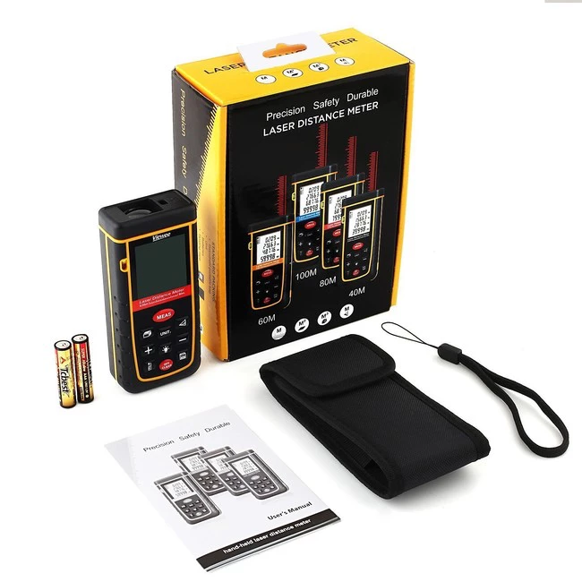 Se trata de un medidor láser, que alcanza distancias de hasta 80 metros, capaz de calcular tanto las distancia como áreas y volúmenes.