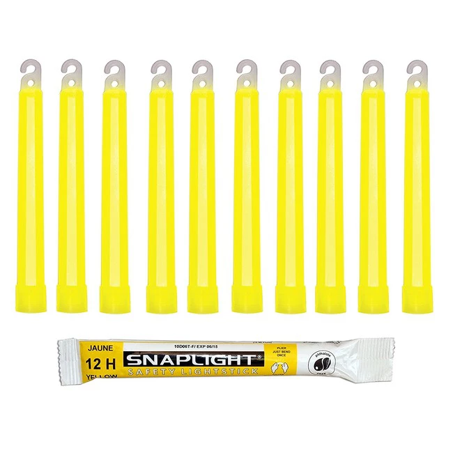 Este kit de Cyalume esta compuesto de 10 sticks con luz fría en color amarillo que aguanta hasta 12 horas, siendo visible hasta 1,6 kilómetros. Generan luz a 360° y son resistentes al agua e incluso sumergibles, aunque lo cierto es que flotan. No son tóxicos ni inflamables y no producen calor, ni llamas o chispas por lo que son ideales para llevar en la mochila cunado hacemos excursiones nocturnas, en el coche para averías, etc.