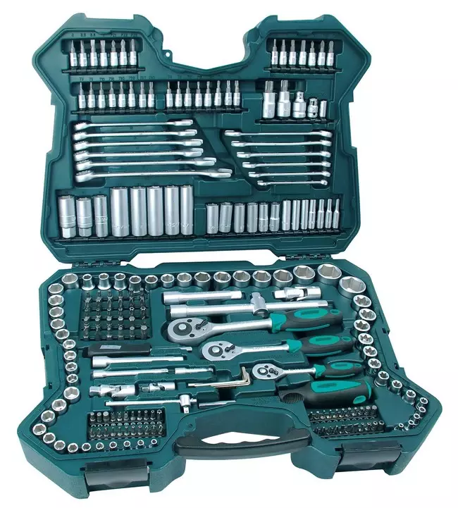 El maletín de herramientas Mannesmann M98430 cuenta con 215 piezas de todo tipo fabricadas en cromo-vanadio y acero especial. El maletín está fabricado en plástico con unas dimensiones de 36 x 51 x 12 cm y un peso de 12 kilos. Incluye todas estas herramientas: