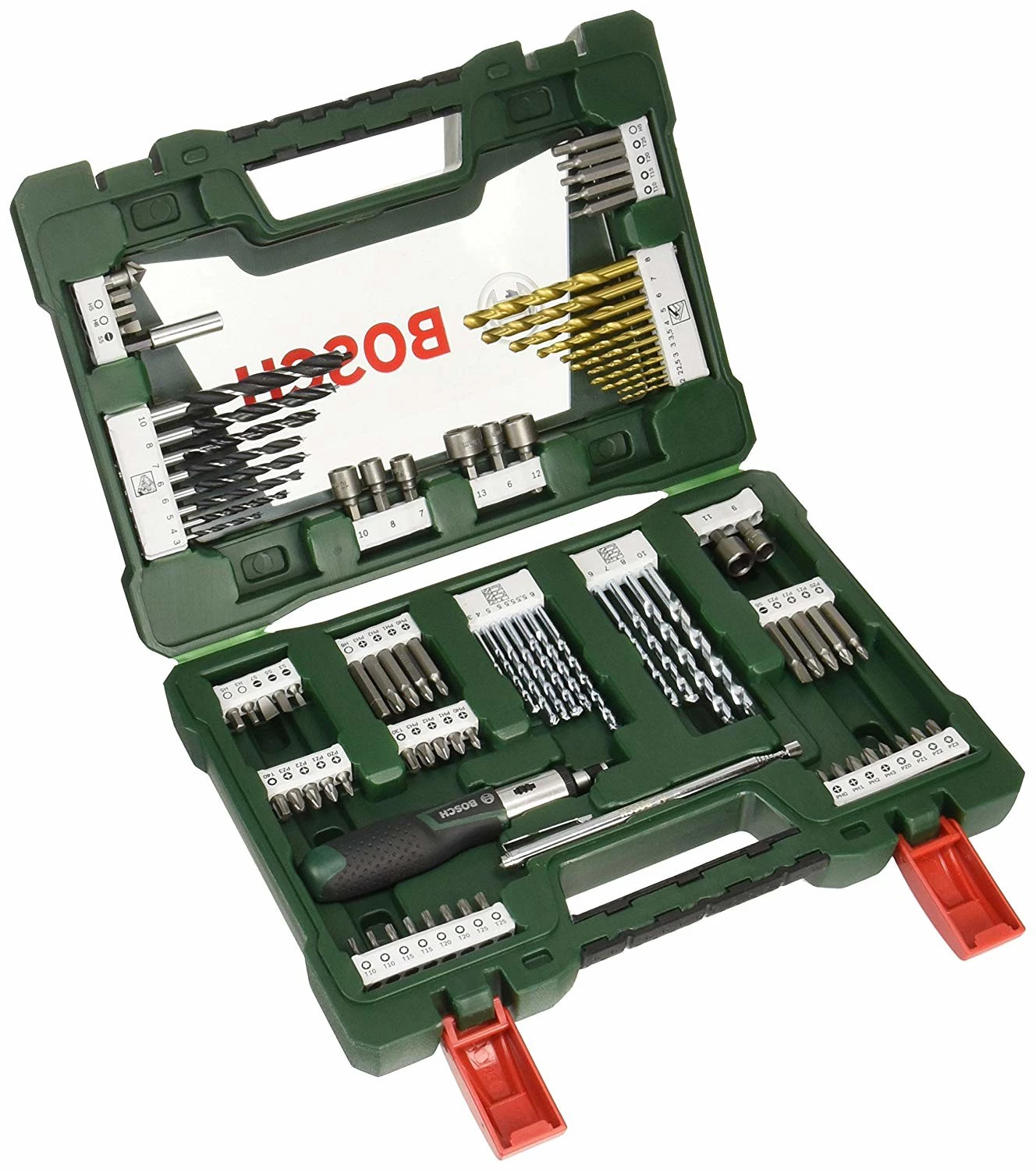 Maletín de 91 piezas para taladrar y atornillar Bosch V-Line Titanio
