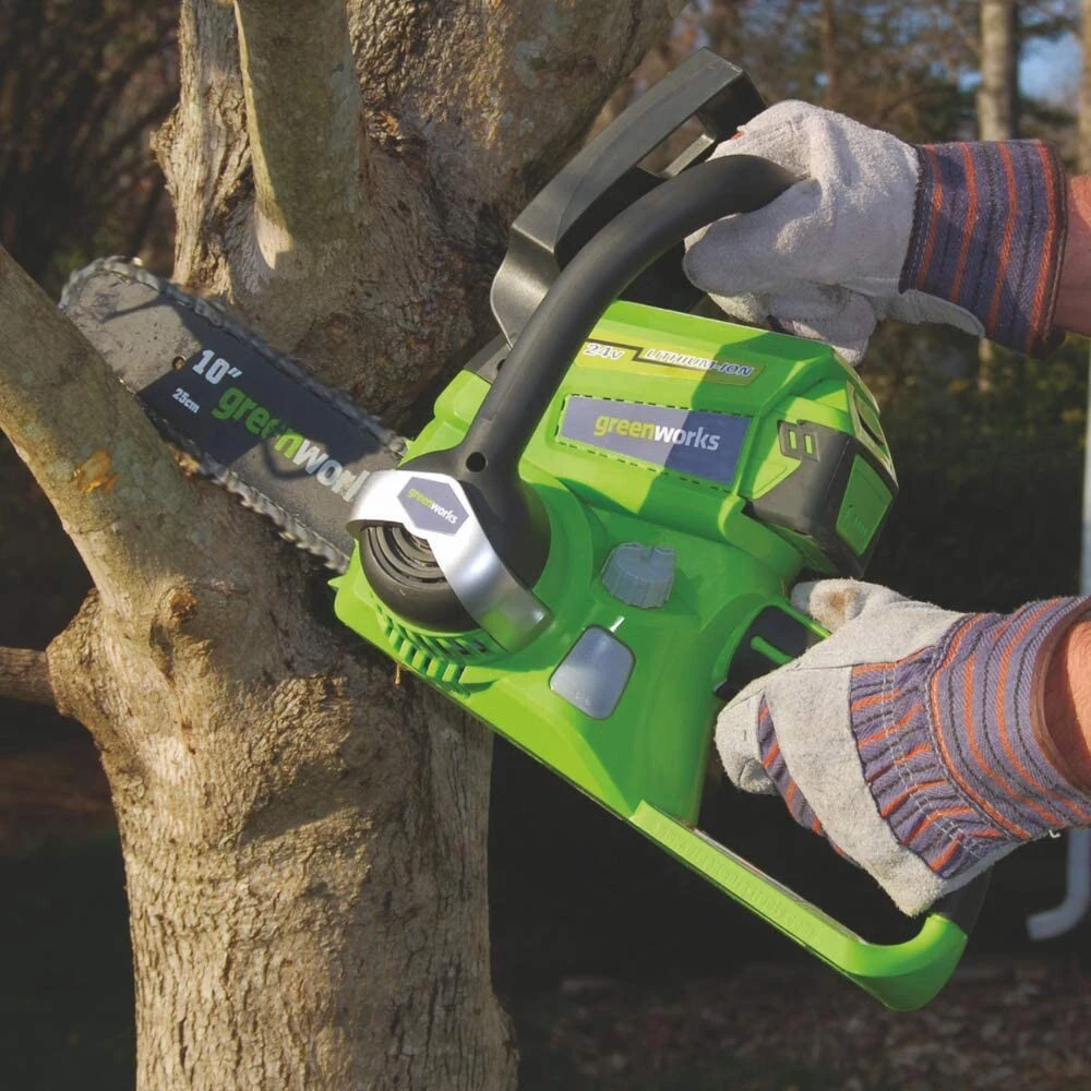 Greenworks Motosierra de batería G24CS25K2 (Li-Ion 24V 4 m/s velocidad de la cadena 25cm longitud de la espada 50ml volumen del tanque de aceite incluyendo la batería de 2Ah y el cargador)