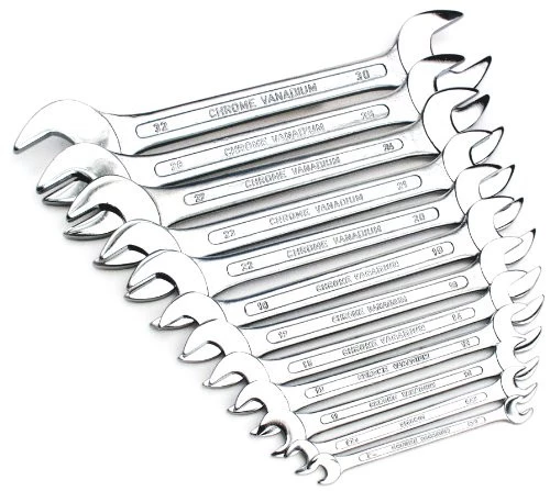 Fabricadas en acero al cromo vanadio estas resistentes llaves nos van a servir para apretar tornillos y tuercas con cabezas de entre los 6 y los 32 milímetros. Concretamente las llaves tienen estas medidas: 6-7, 8-9, 10-11, 12-13, 14-15, 16-17,18-19, 20-22, 21-23, 24-27, 25-28 y 30-32.
