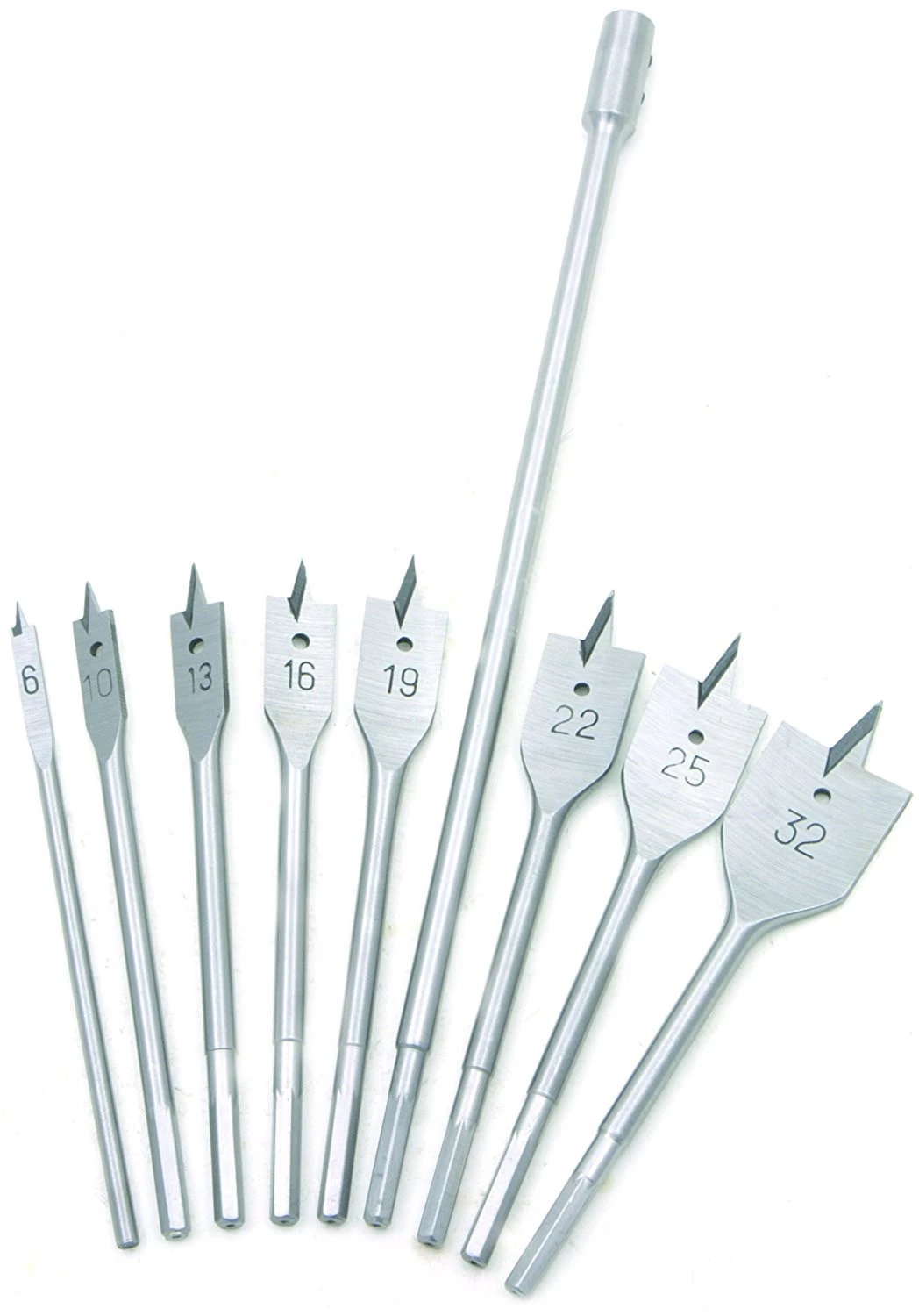 Estas brocas para madera fabricadas en acero inoxidable por la marca Rolson pueden ser muy útiles para trabajos caseros no profesionales en maderas blandas y contrachapados. Tienen una amplia variedad de diámetros: 6, 10, 13, 16, 19, 22, 25 y 32 mm. Vienen con unos prácticos agujeros para colgarlas en un tablón de herramientas aunque tambien podemos guardarlas en una bolsa de vinilo que viene de regalo. El alargador es de 30 cm.