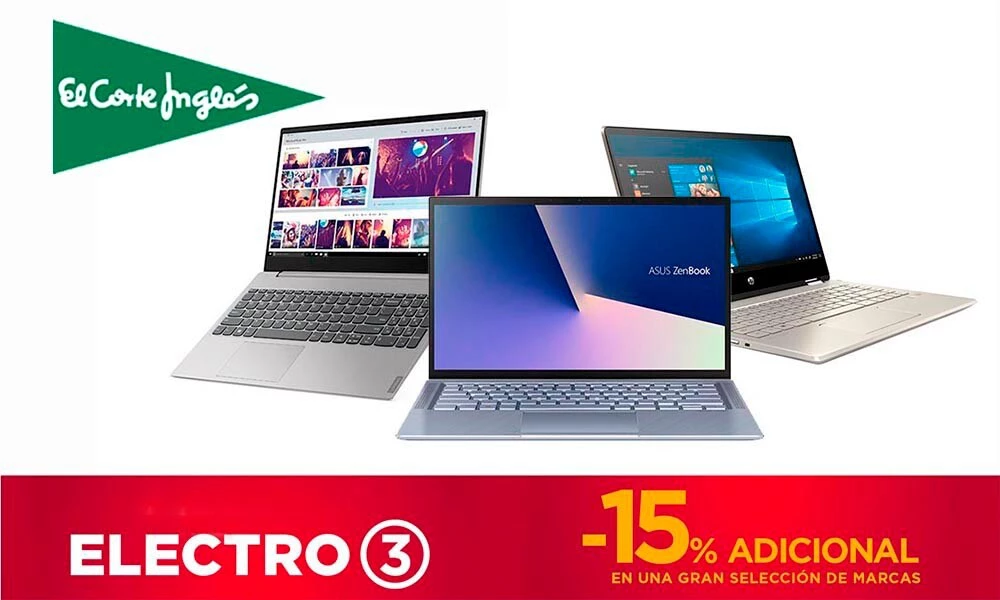 Vuelve el Electro 3 de El Corte Inglés y si estás buscando portátil para el próximo curso, hasta esta medianoche sigues estando a tiempo de encontrarlo más barato, con un descuentos del 15% extra y envío gratis, además de posibilidad de elegir la recogida en tienda o Click&Car si tienes prisa por empezar a usarlo. Sigue leyendo para conocer los modelos más interesantes.