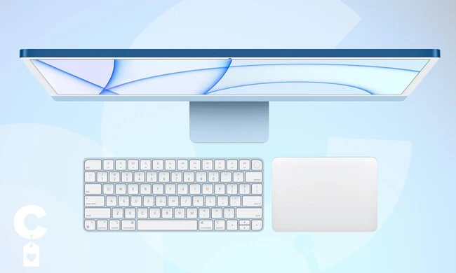 Por lo demás, decir que aunque el equipo se puede comprar hasta en 7 colores diferentes, a este precio sólo encontramos el de color azul, que, como el resto, viene acompañado de los exclusivos teclado y ratón de Apple, Magic Keyboard y Magic Mouse 2, ambos inalámbricos con conexión Bluetooth y con batería, para no tener que acordarse nunca de las pilas, así como el cable Lightning que necesitarás para cargarlos pero eso sí, en esta versión no contamos con Touch ID integrado en el teclado.