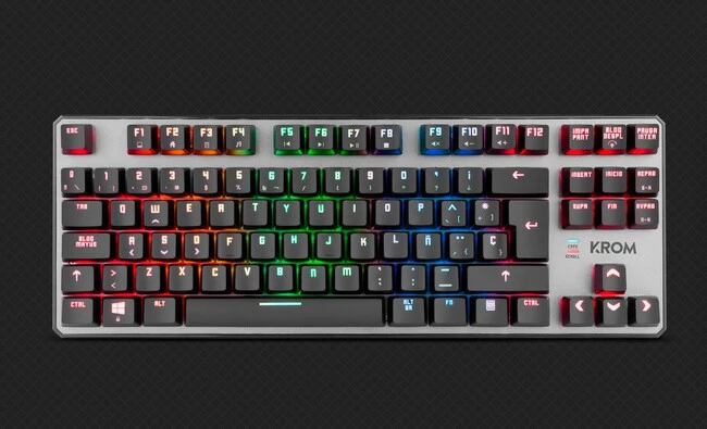 Krom Teclado Gaming Kernel TKL -NXKROMKRNLTKL - Teclado Mecanico, sin Teclado numerico, iluminacion LED RGB, silencioso, Layout Español