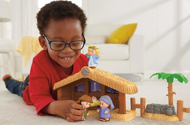 - Desde 67,50 euros tenemos este pequeño nacimiento de Fisher-Price, compuesto por 12 figuras pensadas para niños a partir de 12 meses, además si presionas el ángel hacia abajo oirás una canción e iluminarás la estrella.