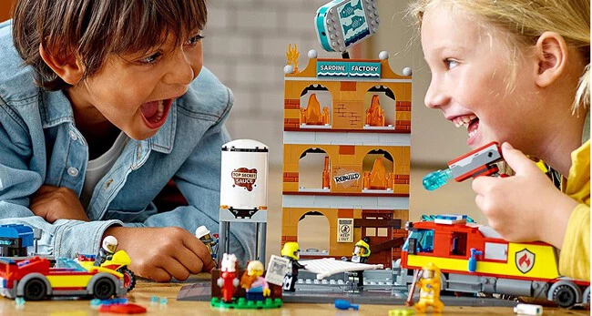 Por 65,99 euros tenemos este set LEGO City 60321 servicio de bomberos, que incluye una fábrica de sardinas de 3 plantas con llamas LEGO plegables, una cuba para la «salsa secreta», y varios vehículos de emergencia de juguete: un camión de bomberos de juguete y un remolque que dispara agua, una moto de bomberos y la furgoneta del jefe de bomberos.