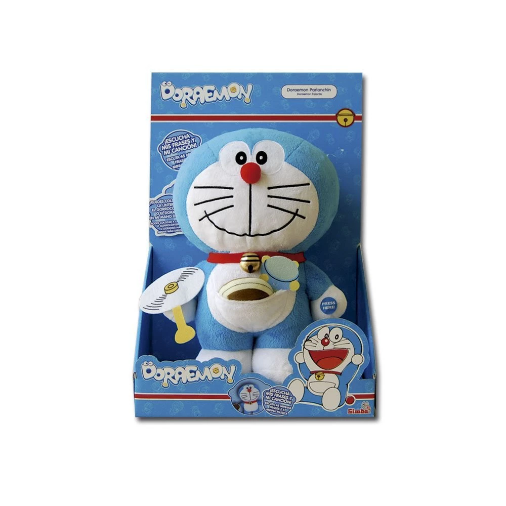 El principal atractivo de la serie es Doraemon y los increíbles inventos y artilugios que saca de su bolsillo en cada capitulo. Uno de los más recurrentes es el gorrocoptero, que va incluido en versión peluche. También trae una linterna mágica y un dorayaki como puede verse en la siguiente imagen: