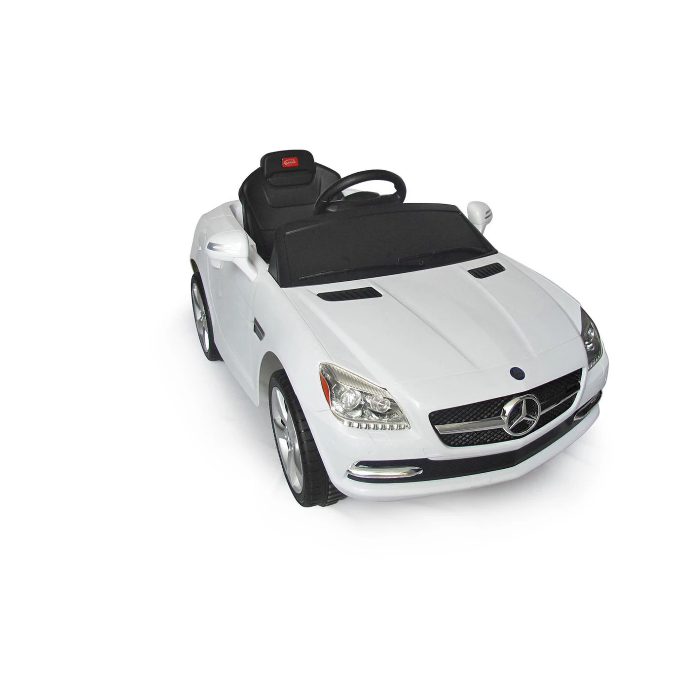 El coche es una réplica en miniatura del Mercedes Benz 81200, en color blanco y descapotable, está pensado para niños mayores de 3 años. Funciona con batería de 6V, control remoto con batería de 9V e incluye extras como bocina, sonido en el volante, luces en los faros del coche y reproductor MP3.