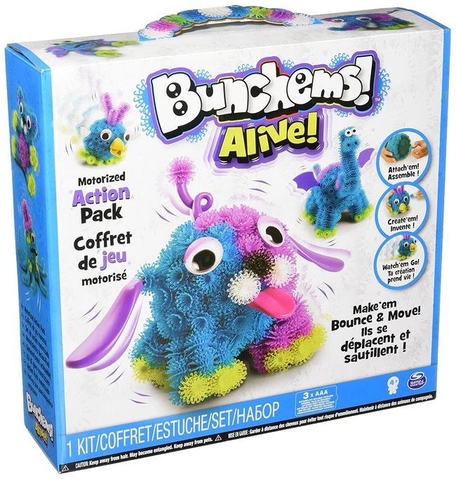 Bunchems es un nuevo juego de cosntrucción anunciado en Tv que facilita, gracias al diseño de sus piezas que incluso niños de cuatro años en adelante puedan crear construcciones de buen tamaño. Las piezas se enganchan entre si con gran facilidad (cuidado, también se enganchan en el pelo) y podemos hacer cualquier cosa con estas coloridas bolas, como por ejemplo el perro que aparece en la caja: