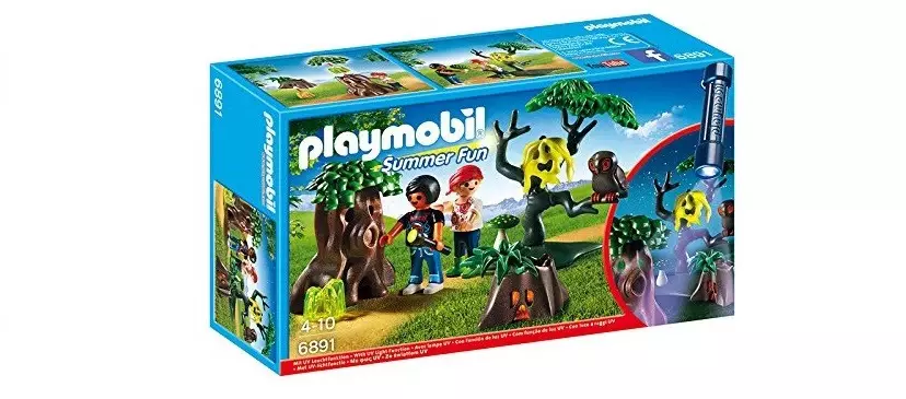 En Amazon podemos encontrar un set de Playmobil bastante barato pero muy original: El set Summer fun Caminata nocturna, que cuesta sólo 7,28 euros y que cuenta con una luz ultravioleta para ver en la oscuridad alguno de sus elementos.