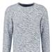 Como podemos ver en la imagen superior estamos ante un jersey Jack and Jones de punto con cuello redondo virado en gris jaspeado. Cuenta con cenefa de punto elástico en cuello, cintura y puños. Pespuntes al tono. Su composicion es 100 % algodon.