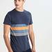 Se trata de una camiseta de manga corta de color azul y con lineas/bandas de colores blancas y amarillas. En el pecho trae un pequeño bolsillo, es de cuello redondo, esta fabricada en un 60% algodón y un 40% poliéster.