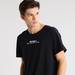 Se trata de una camiseta básica de la marca de color negro, en el centro tiene letra de color blanco y esta disponible en las tallas **S - M - L - y XL******. Es una camiseta que se puede combinar tanto con pantalones vaqueros y usarla de una forma elegante, como para hacer deporte con un chándal o pantalones cortos.