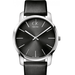 Como se puede observar en la imagen superior estamos ante un elegante reloj analógico en acero inoxidable con fondo negro, tal y como es la correa. Fabricado en Suiza, tiene una esfera minimalista sin números y dos saetas que nos marcan hora y minuto, nada más. La correa es de cuero y tiene cierre de hebilla.