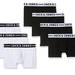 Como podemos ver en la imagen superior este pack de siete bóxer para hombre cuenta con cuatro calzoncillos en negro con la goma de la cintura en blanco y tres calzoncillos blancos con la goma en negro. En la cintura aparece el nombre de la marca en gran tamaño. Su composición es de 95% algodón y 5% elastano.