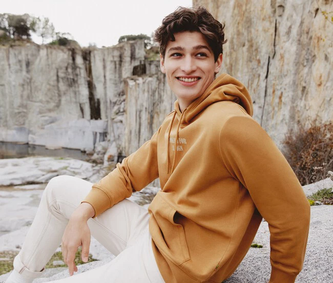 Una combinación de azules perfecta para todos los estilos por 24,99 euros (en lugar de 32,99 euros). Tiene un bolsillo tipo canguro, capucha regulable, bici bordada en el pecho y acabados de canalé. Tallas desde XS a XXXL.