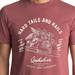 Esta camiseta de manga corta es de algodón 100%. La tienes en tres colores, blanco, azul y marrón,con un efecto teñido. Su diseño es divertido y fresco, solo necesitas añadir unos vaqueros a la ecuación y tendrás el look perfecto para una tarde de primavera.