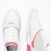 Se trata de unas zapatillas blancas, grises y rojas fabricadas en nylon y cuero. Son unas zapatillas de caña baja que podemos usar en nuestro día a día combinándola con todo tipo de ropa casual o bien también podemos usarlas para practicar deporte.