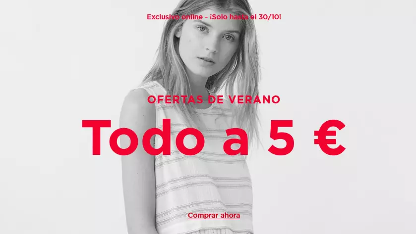 Hasta el día 30 de octubre mangoutlet pone a nuestra disposición una promoción tremenda: más de un centenar de prendas de su colección de verano en las secciones de hombre, mujer, niño, niña y tallas grandes por tan sólo 5 euros. A partir de 30 euros de gasto tenemos envío gratis.