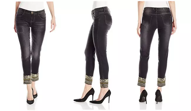 Como se puede observar en la imagen superior estamos ante unos pantalones vaqueros de color azul oscuro con detalles étnicos bordados en los puños. Su composición es 100% poliester (aunque en Amazon aseguran que es otra, nos fiamos más de la descripción de la web oficial de Desigual).