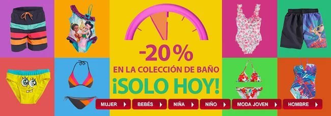 Si el otro día os hablábamos de una oferta relámpago que habían sacado en su página web los C&A referente a zapatos, en este caso nos llega el aviso de la misma pero esta vez en trajes de baño. Y sí, solo es hoy y somos conscientes de que quedan unas pocas horas pero... el caso es que aún estamos a tiempo de aprovecharla si vemos que nos puede interesar.