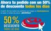 En este caso se trata de un 50% de descuento en los pedidos online, consiguiendo que todos los productos te salgan a mitad de precio cualquier día de la semana. Y te lo llevan a casa sin cobrar gastos de reparto, al menos de momento. Viendo esto casi que compensa hacer el pedido a través de la web en vez de levantar el teléfono, ¿no?