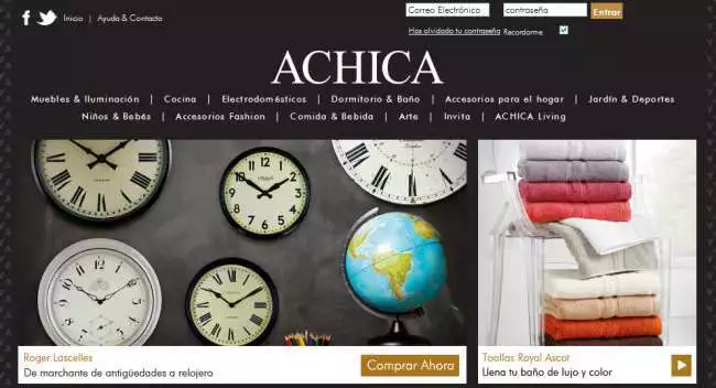 Para todos aquellos amantes de lo bueno (como decía mi abuela) tenemos un club llamado Achica. ¿Qué es?, es una tienda online que ofrece productos de lujo sólo para sus socios los cuales se pueden registrar de manera gratuíta. Una vez apuntados todos los socios disfrutan de una gran variedad de marcas en menaje de hogar, jardín y estilo de vida con hasta un 70% de descuento en algunos productos.