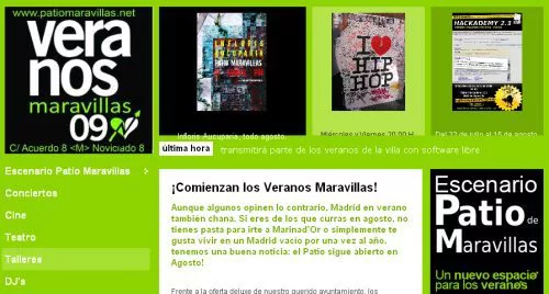 Talleres de teatro, bicicletas, salsa, fotografía digital, cursos de guión y un larguísimo etc para que este calor sofocante se pueda llevar mejor y todo ello de manera gratuita y altruista. Según los vecinos una manera de que los participantes puedan crear su propia agenda cultural y social.
