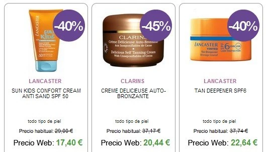 Echa un ojo en la web y elige la crema o bronceador que más se adapta a tus necesidades y lo que estás buscando. No olvides pensar en todo el verano, tu tipo de piel y sopesar las horas del día en las que vas a poder ir a la playa o a la piscina, para medir el grado de protección. En esta oferta online, si tu pedido es de más de 40 euros, los gastos de envío te saldrán gratis.