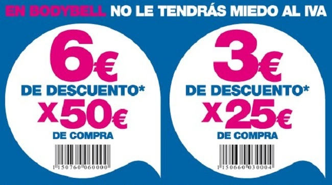 Se trata de un cupón que podemos conseguir en su página de Facebook y que, una vez impreso, tenemos que presentar al pagar nuestra compra en cualquiera de sus tiendas. No es acumulable a otras ofertas ni válido para pedidos online. Los descuentos los conseguiremos al superar ciertas cantidades: 3 euros por cada 25 euros de compra o 6 euros por cada cincuenta.