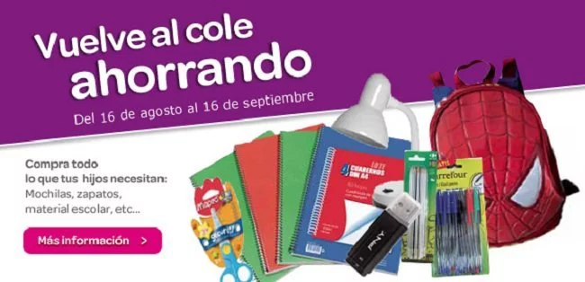 Con septiembre a la vuelta de la esquina, Carrefour es otra de las grandes superficies que te ayuda con 'la vuelta al cole' 2012 ya tan cercana, para comprar el mejor material a precios reducidos. Su promoción cuenta con una amplia gama de material escolar barato y de calidad como libros, cuadernos o diccionarios, entre otros. Como siempre, en la web podemos echar un ojo.
