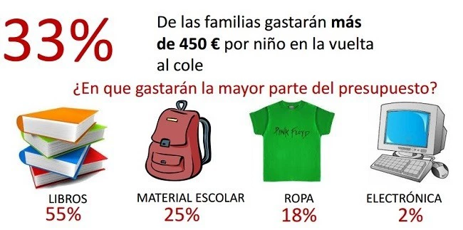 Ya hemos hablado de la vuelta al cole, que tenemos cada vez más cerca, y algunas de las ofertas y promociones que nos podemos encontrar en nuestras tiendas habituales. Pero ¿cuánto nos vamos a gastar y cómo podemos hacer que sea menos? Según una encuesta realizada por Tiendeo a más de dos mil consumidores, el 33% prevén gastar más de 450 euros y en el reparto de gastos se llevan la palma los libros de texto.