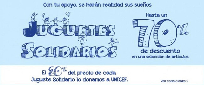Puedes comprarlos con hasta un 70% de descuento a muy buen precio, y al mismo tiempo ayudarás a hacer realidad los sueños de los más desfavorecidos. Todo ello porque el 20% del precio de cada juguete solidario que compres será donado a UNICEF, de ahí su particularidad. Se trata de una buena oportunidad para ahorrar dinero y al mismo tiempo regalar sonrisas, tanto en casa como para los que más las necesitan estas navidades, ¿no te parece?
