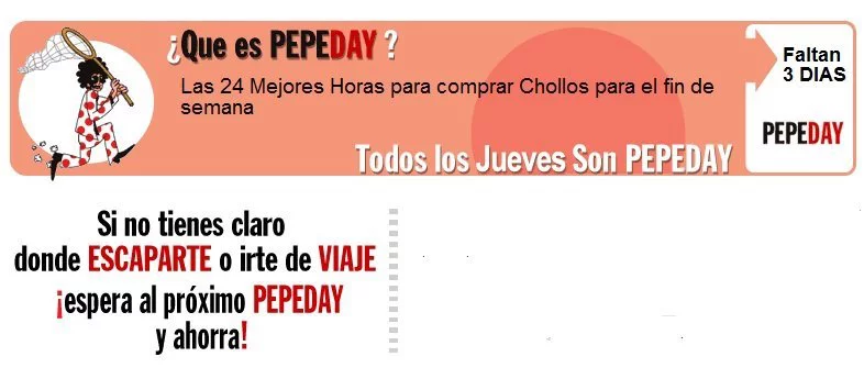 Buena muestra de ello es la promoción Pepedays, en la que la empresa Pepetravel nos ofrece las mejores 24 horas para buscar la opción más económica para darnos una escapada el fin de semana. Dentro de esta promoción podemos encontrar ofertas como un viaje a Mallorca de tres días de duración (vuelo + hotel) por menos de 120 euros, o Tenerife por 145 euros, entre otros muchos destinos más.
