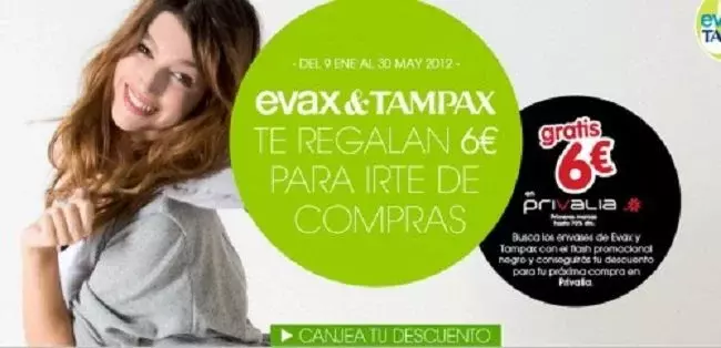 Como todo descuento es bueno y es importante que no se nos escape ninguno, ahora al comprar envases de Evax y Tampax tendremos un descuento de seis euros en el outlet online Privalia, una tienda de moda a nuestro alcance que se caracteriza por tener primeras marcas con hasta un descuento del 70% y más ahora en rebajas.