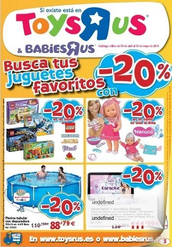 Estamos en época de comuniones y el regalo perfecto para muchos niños podemos encontrarlo en tiendas como Toys R Us. Por otra parte, yo reconozco que este año estoy pensando en comprar una piscina para instalar en casa, y mira por donde también me la puedo encontrar rebajada en el nuevo catálogo de la tienda. En principio, descuentos activos hasta el 31 de mayo.