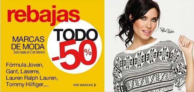 Se trata de un 50 % de descuento en una selección de marcas de moda para mujer, hombre y niños. En la web podemos ver las marcas que entran dentro de esta promoción especial y entre las que nos encontramos Tommy Hilfiger, Fórmul@ Joven, Green Coast, Easy Wear, Dockers, Pepe Jeans o artículos Disney para los pequeños de la casa.