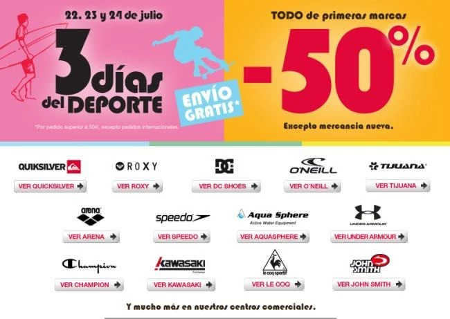 Deportistas, y todo aquel aficionado al deporte o a la moda, zapatillas deportivas, complementos y artículos deportivos, El Corte Inglés lanzó hace unos días una interesante promoción en toda la categoría vía online del "Deporte". Hoy mismo termina y podemos encontrar grandes marcas con bastante descuento.