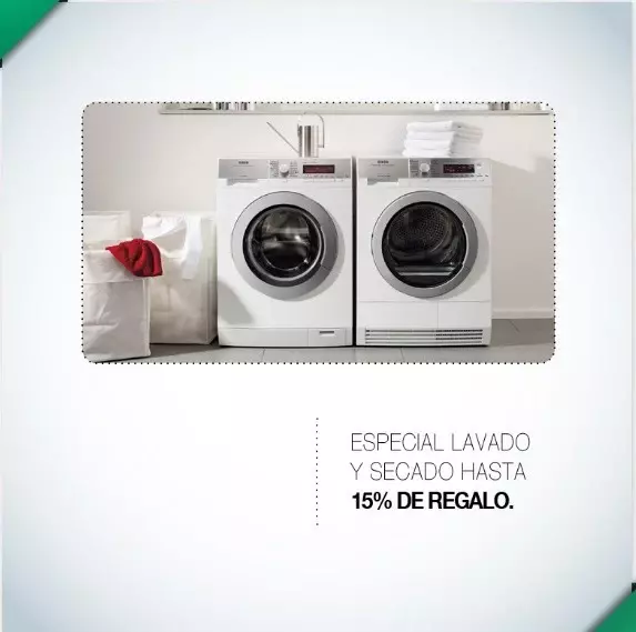 Hasta el 17 de Octubre de 2013 por la compra de una lavadora o secadora (excepto marca Miele) te podrás llevar una Tarjeta Bonificación canjeable en electrónica y electrodomésticos. En concreto un 10 % de bonificación para productos con precio desde 349 euros y un 15 % de bonificación para productos con precio desde 499 euros.